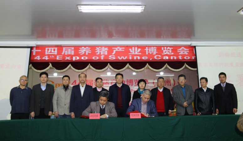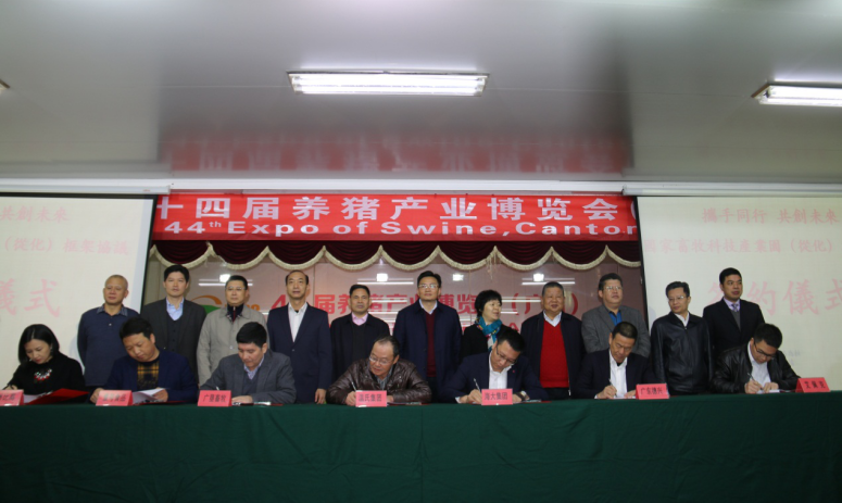 12月18日上午,创建国家畜牧科技产业园(从化)框架协议签署活动在第44届养猪产业博览会(广州)闭幕式上举办。省农业厅副厅长郑惠典,厅纪检组组长吴育莲,副巡视员刘付启荣,副巡视员、省养猪行业协会会长吴秋豪共同见证了签约仪式。中国民主同盟中央委员会委员郑庆禄,国家生猪产业体系首席科学家、中山大学教授陈瑶生,华南农业大学教授李加琪,中山大学研究员、广东省养猪行业协会秘书长刘小红等专家学者,以及广州市农业局,从化区委、区政府,相关企业代表等单位负责人参加了签署活动。