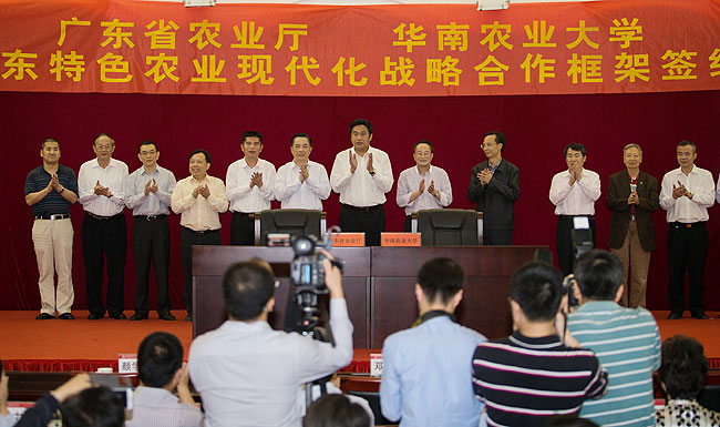 根据合作协议,省农业厅将与华南农业大学在特色现代农业发展战略研究、农业农村改革研究、现代农业发展示范、农业科技创新驱动、农业农村人才培训、农业安全和应急管理等方面加强合作,共同推进广东特色农业现代化建设。协议的签订将对强化我省农业科技创新驱动,加快转变农业发展方式,推进广东特色农业现代化建设进程发挥积极作用。