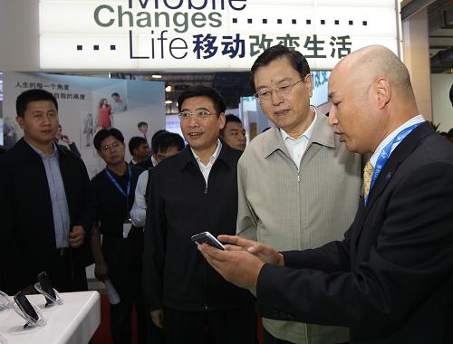 9月28日上午,张德江来到中国国际展览中心,参观了中国电信、中国联通、中国移动、大唐电信、TD产业联盟、华为、中兴、爱立信、上海贝尔等企业展台,认真听取了新一代信息技术产业化情况介绍,详细了解了在三网融合、TD-LTE、云计算、宽带通信等领域新技术的研发、应用情况,兴致勃勃地体验了三网融合、移动互联网等新业务的现场演示。