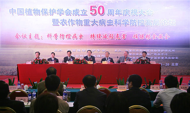 10月25日,中国植物保护学会成立50周年庆祝大会暨全国农作物重大病虫科学防控高层论坛在北京举行。农业部部长韩长赋作出重要批示,农业部副部长余欣荣出席论坛并做了题为“建设现代植保,服务现代农业”的主题报告。
