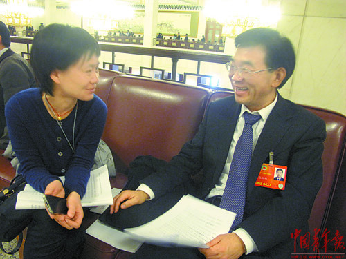 农业部副部长、全国政协委员张桃林(右)接受访谈。