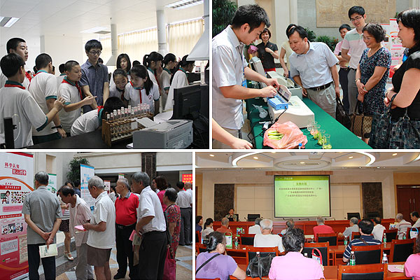 省农业科学院分管领导廖森泰研究员对活动进行了安排布置,启动仪式由院公共监测中心副主任孙玲研究员主持,省农业厅农产品质量安全监管处赵苹处长、院科技合作处刘建峰处长、院办公室方春华主任、院党群办陈远辉副主任等出席了启动仪式。院离退休干部专家、社会公众、学生等共200多人参加此次活动。在省农业科学院考察工作的省编办和省审计厅有关领导也兴致勃勃地参观了速测技术演示、农产品质量安全知识宣传和咨询等活动。