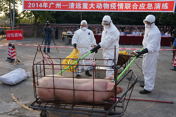 为落实今年3月份广州、清远市农业部门关于对口帮扶工作会议精神,加强广清两地动物卫生监督工作的交流合作,11月20日两市成功举办了突发动物疫情联合应急演练。此次演练创造了两市联合新形式,检验了应急预案的可操作性,明确了应急指挥与处置程序,锻炼了应急队伍,提升了动物疫病区域联防联控水平,为依法、科学防控重大动物疫情打下了坚实的基础。