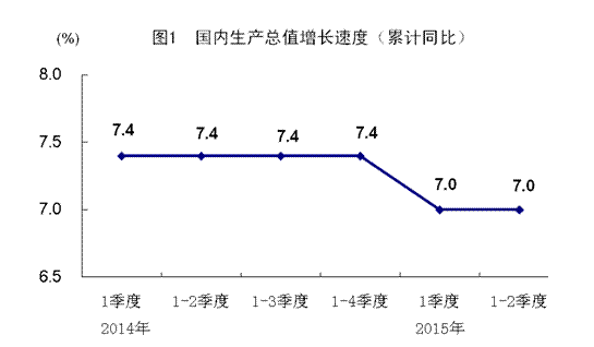 2014年各季度及2015年一、二季度GDP环比增速分别为1.6%、1.9%、1.9%、1.5%、1.4%、1.7%。