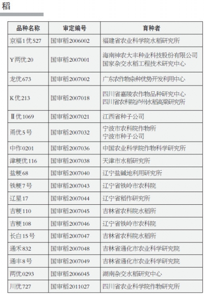 第十一批退出国家审定农作物品种目录