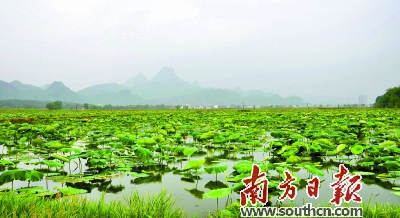 南方日报讯 (记者/段灿 通讯员/欧阳应彪 于云芳)荷叶生时春恨生。进入夏季,连州镇龙咀村委会大布坪村的数百亩藕田荷叶绽放,微风摇曳,满目翠绿,更散发着扑鼻清香,景象宁静怡人。这是大布坪村完成土地细碎化整合后出现的喜人一面。该村去年下半年全面完成了土地细碎化整合,今年200多亩水田成功租赁、完成流转。对于该村村民而言,今年开始,他们在不需要耕种土地的情况下就可以坐收土地租赁收入,村民收入明显提升。