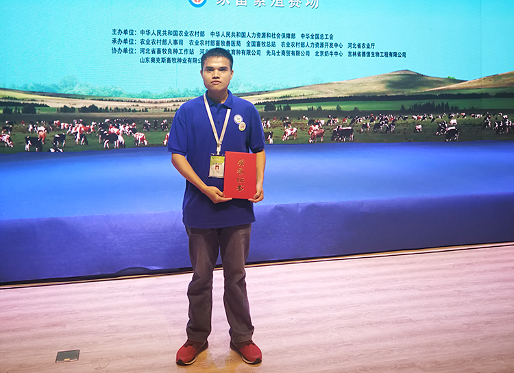 家畜繁殖员大赛是2018年中国技能大赛的主要赛事之一。经各省区、直辖市和新疆兵团组织初赛选拔,2018年9月12日至13日,农业农村部人事劳动司、农业农村部畜牧兽医局、全国畜牧总站、农业农村部人力资源开发中心、河北省农业厅等联合在石家庄市隆重举行全国家畜繁殖员职业技能总决赛,来自全国32个代表队共96名选手汇集石家庄,高手云集,同场竞技。经过两天紧张的理论知识考试、实验室镜检、现场实际操作和知识问答等环节,我省广州华美牛奶有限公司的许纯发同志发挥稳定,成绩优异,荣获农业农村部颁发“优秀选手”荣誉证书。
