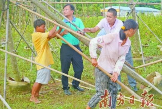 钟汉宏带领贫困户及村民齐心协力建设苗圃场。