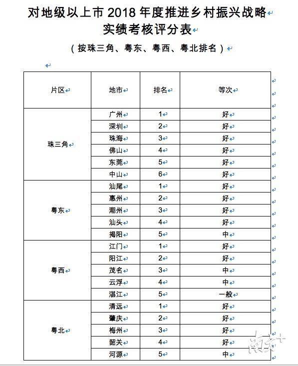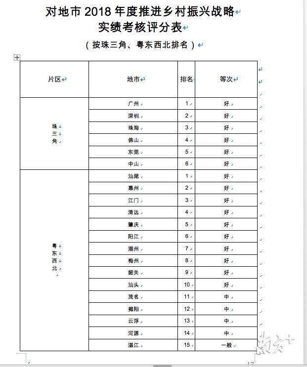 @各单位,广东首次公布推进乡村振兴战略实绩考核工作结果